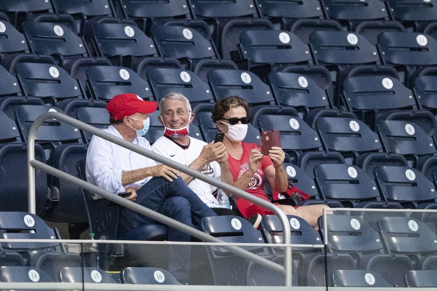 That could happen to anyone.  Not everybody is Sandy Koufax.  The revealing event happened during the game.  A photo was taken of Fauci in the stands, seated between two companions.  He has his mask down.  The trio are not maintaining social distancing.  Here is the photo: